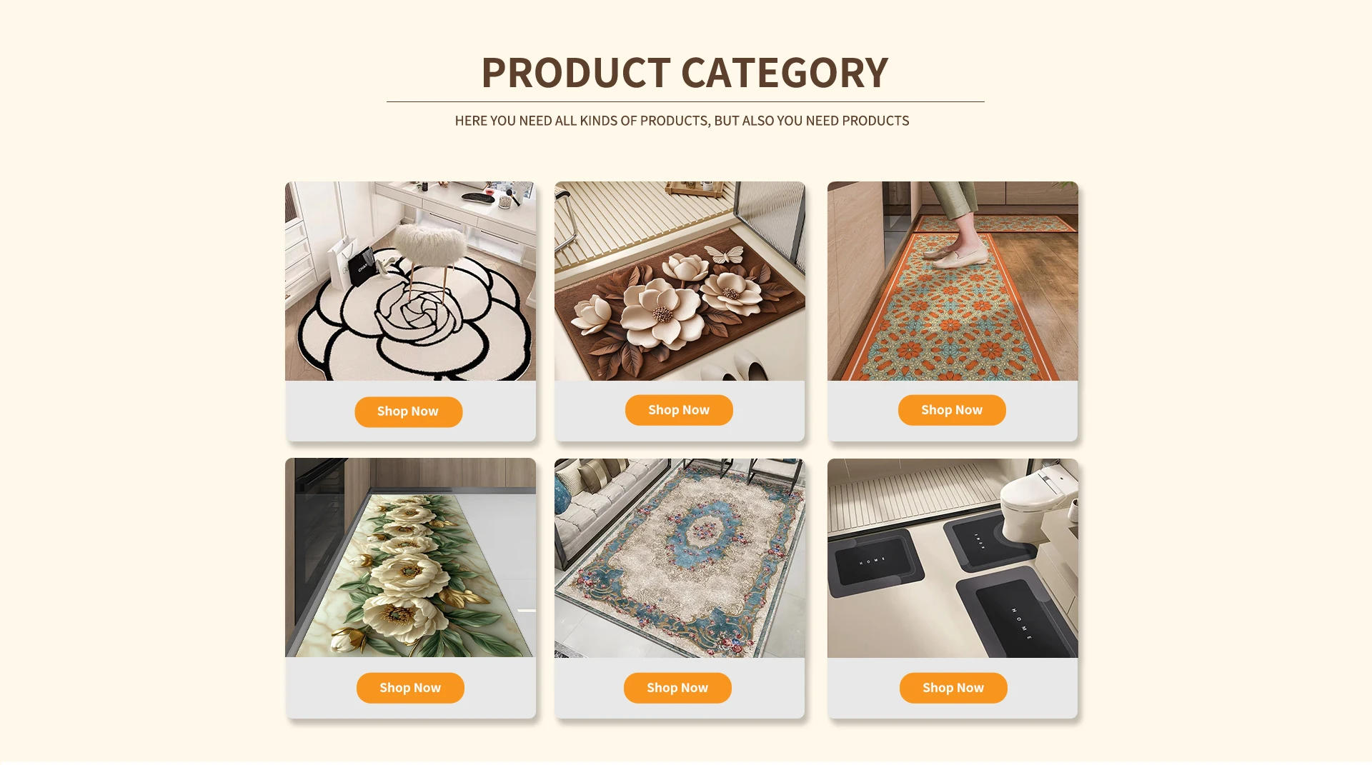 Productos principales:Alfombras de área, alfombrillas de baño, alfombrillas de cocina, alfombras de corredor, alfombrillas de puerta